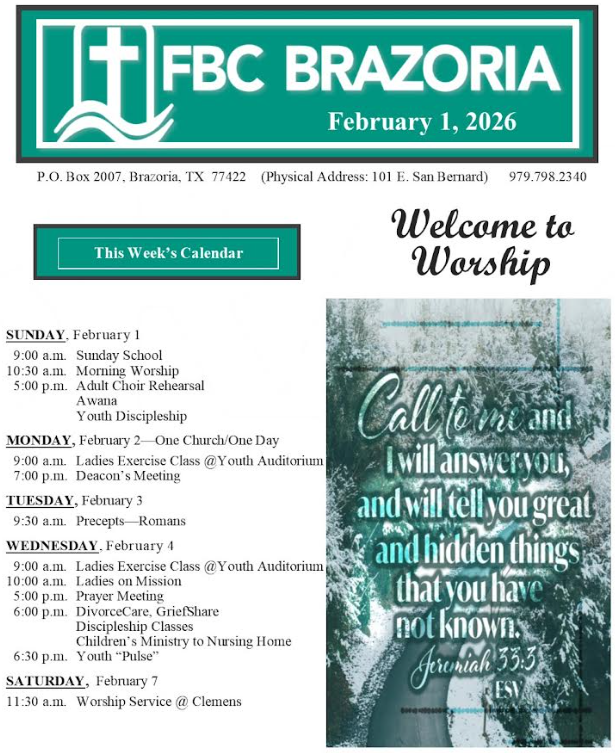 Please call the church at 979-798-2340 with any questions. Deadline to register is Tuesday, February 10th.